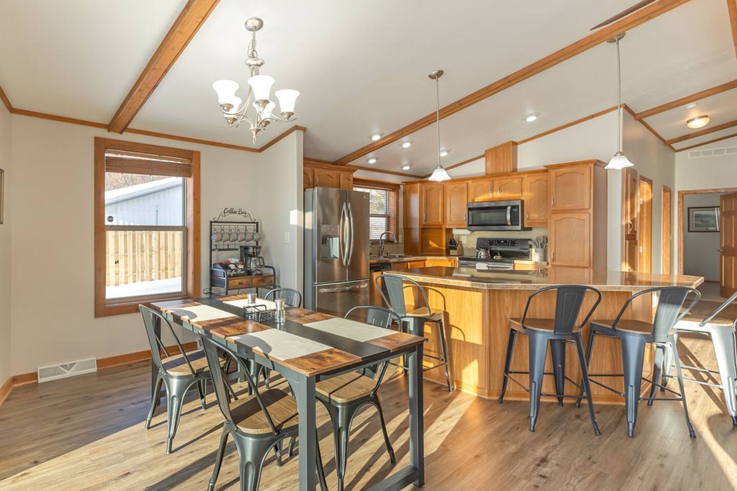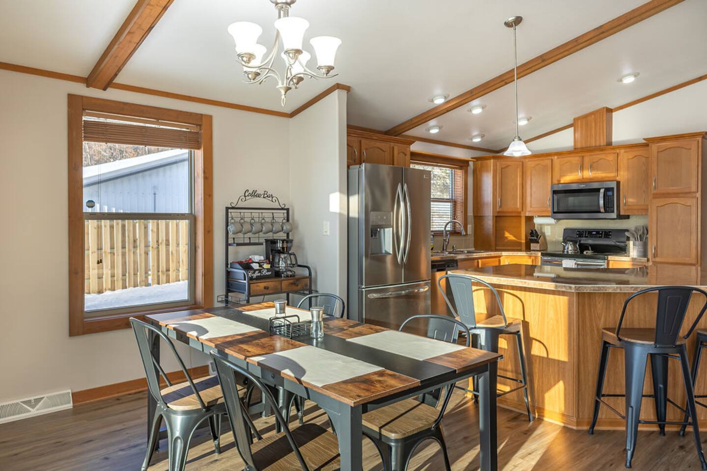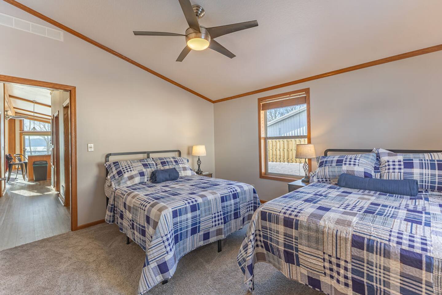 Escape to a peaceful Ferryville getaway near the Mississippi River. Close to river landings, scenic overlooks, and small town charm. This comfortable home features vaulted ceilings, a cozy fireplace, and a fully stocked kitchen. With two bedrooms (each with two full beds), a pull-out couch, two full baths, and a spacious outbuilding to park a boat and gear, it’s the perfect base for fishing, boating, and exploring the Driftless Region. Relaxing in the Hot Tub adds the cherry on top.